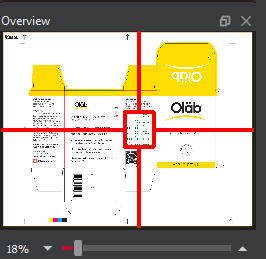 The Overview panel displays the image or inspection currently being viewed in the Inspection View. The Braille region currently selected is indicated by the intersection of the two red lines.