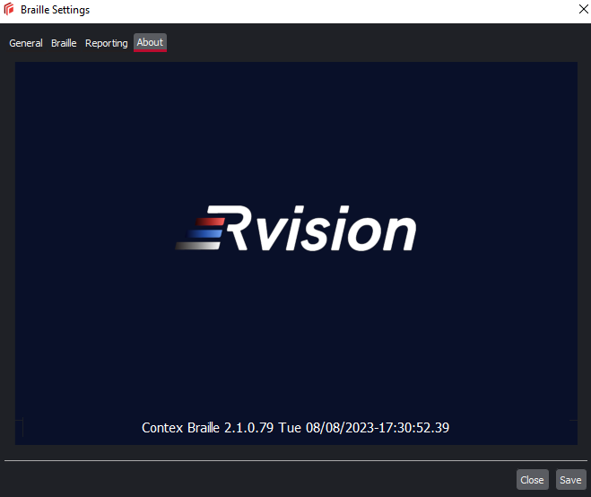 This tab shown shows the version of the Braille Plug-in that is installed.