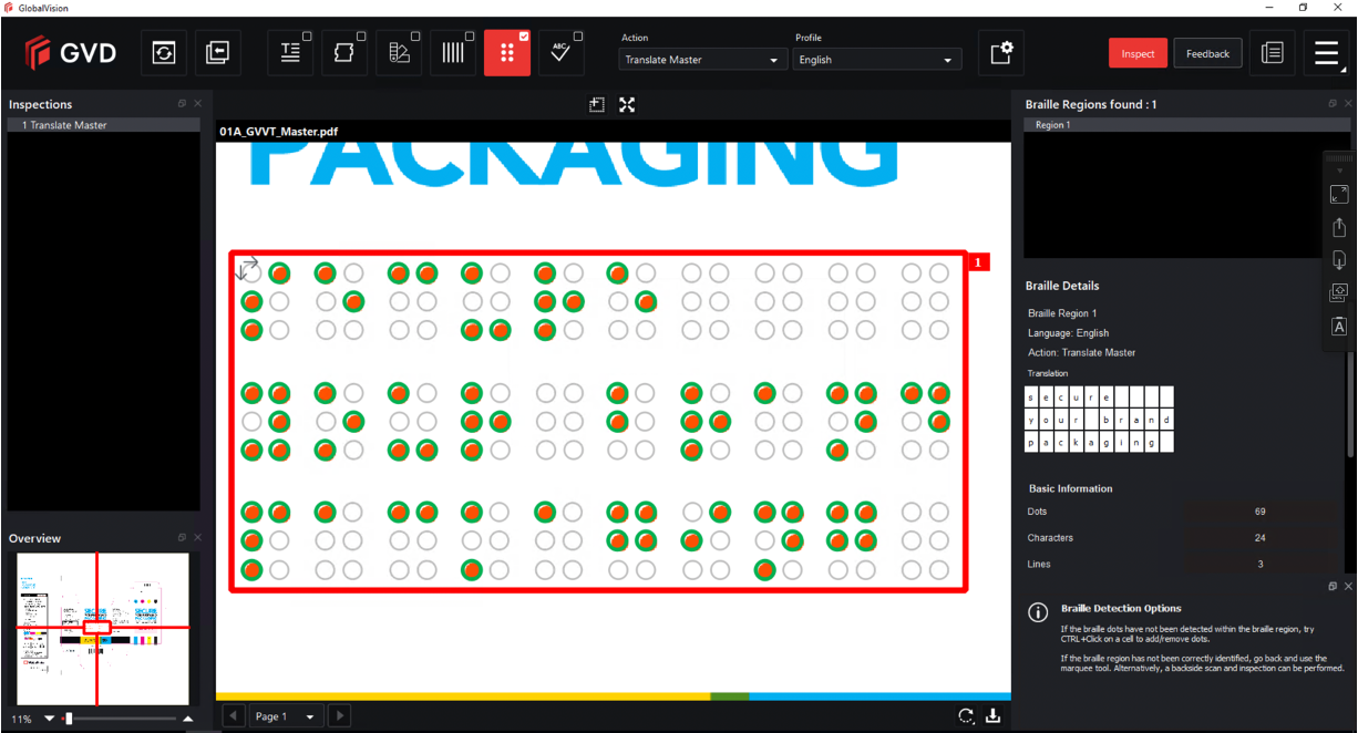 If a file has multiple pages, ensure the one with the Braille regions displays prior to the inspection.