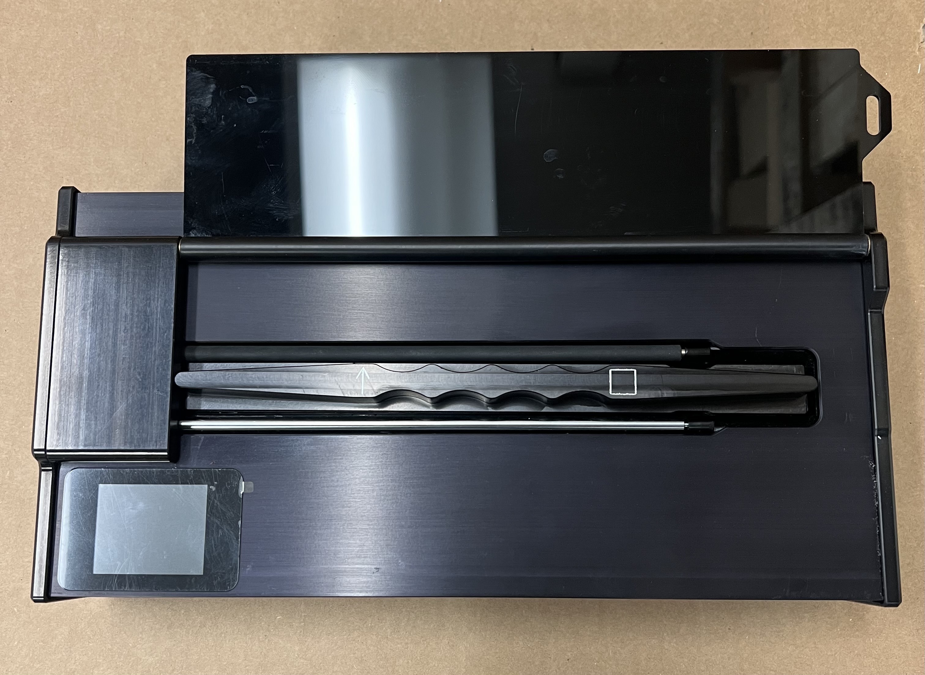 Once the scanner has initialized, lift the scanner lid and place a cylindrical object on the rollers over the sensor.