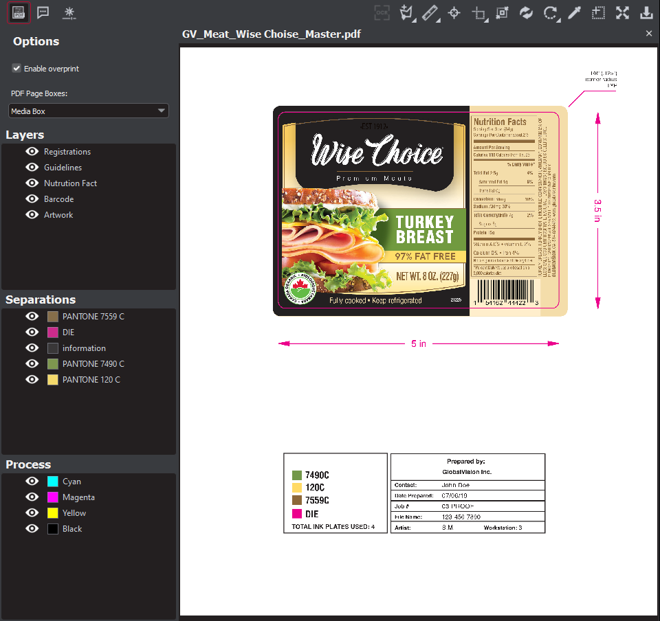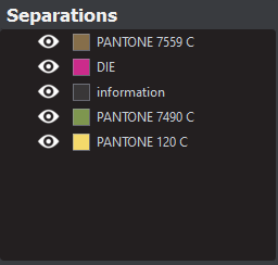 The Separations panel displays the color separations present in the PDF file.