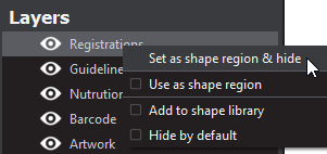 Set as shape region & hide: The layer or separation is detected as a shape and hidden when the image is loaded into the Master/ Sample panel (with the shape outlined).