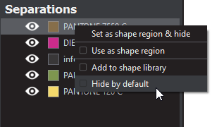 Note: Hide by default takes effect at the next load, including for the file currently loaded. For the layer or separation to be hidden on the file currently loaded, reload the file.