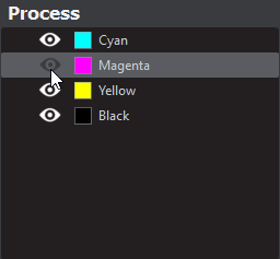 Click the eye icon. The icon grays out and the process color becomes hidden in the image.