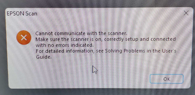 Issue: I am trying to scan using our Epson DS 50000 but am receiving an error “Cannot communicate with the scanner. Make sure the scanner is on, correctly setup and connected with no errors indicated.”