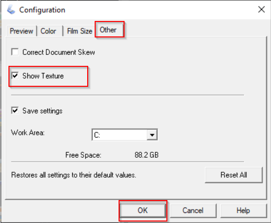 Configuration → Other → Check 'Show Texture' option. (Each time you scan, this option has to be checked manually).
