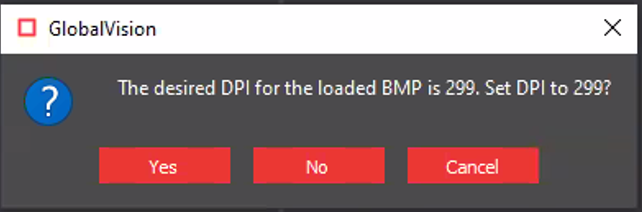 Article Title | GVD - Error message - The desired DPI for the loaded BMP is 299. Set DPI to 299? |
