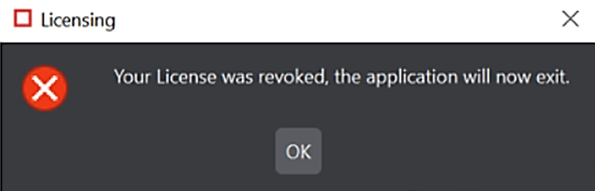 Error Message: Your License was revoked, the application will now exit