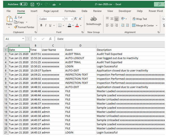 The entire audit trail can be seen from within GlobalVision desktop it can also be exported from GlobalVision desktop.