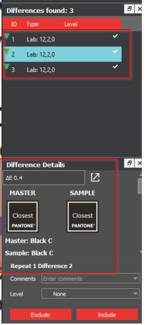 GlobalVision text inspection will sometimes identify color differences in large groups of text even though the color inspection module identifies no discernible difference between the font colors (See images below):