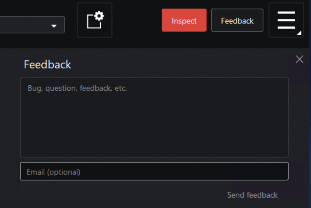 Upon clicking the button a pop-up window shows that allows the user to leave feedback within the application. The feature allows providing the given bug/question/feedback anonymously, as the email field is optional. If so requested, the email address can be added with the purpose of ensuring potential follow-ups about a specific bug or requirement.
