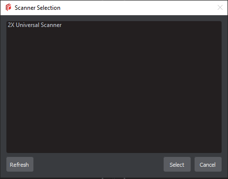 Select the applicable scanner from the Scanner Selection window and click Select.
