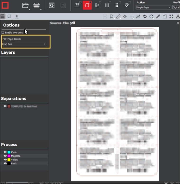 As such, when the document is opened on the GVD application, as is, it would show both the hidden (cropped-out) and unhidden sides of the PDF document. To make the GVD application show only the cropped section of the affected page, you only need to click the drop-down in the 'PDF Page Boxes' section (highlighted in yellow in the image below) and select 'Crop Box'. This would make the GVD application ignore the cropped-out (hidden) areas, just like in the PDF reader. Please see the image below for the cropped-out page.