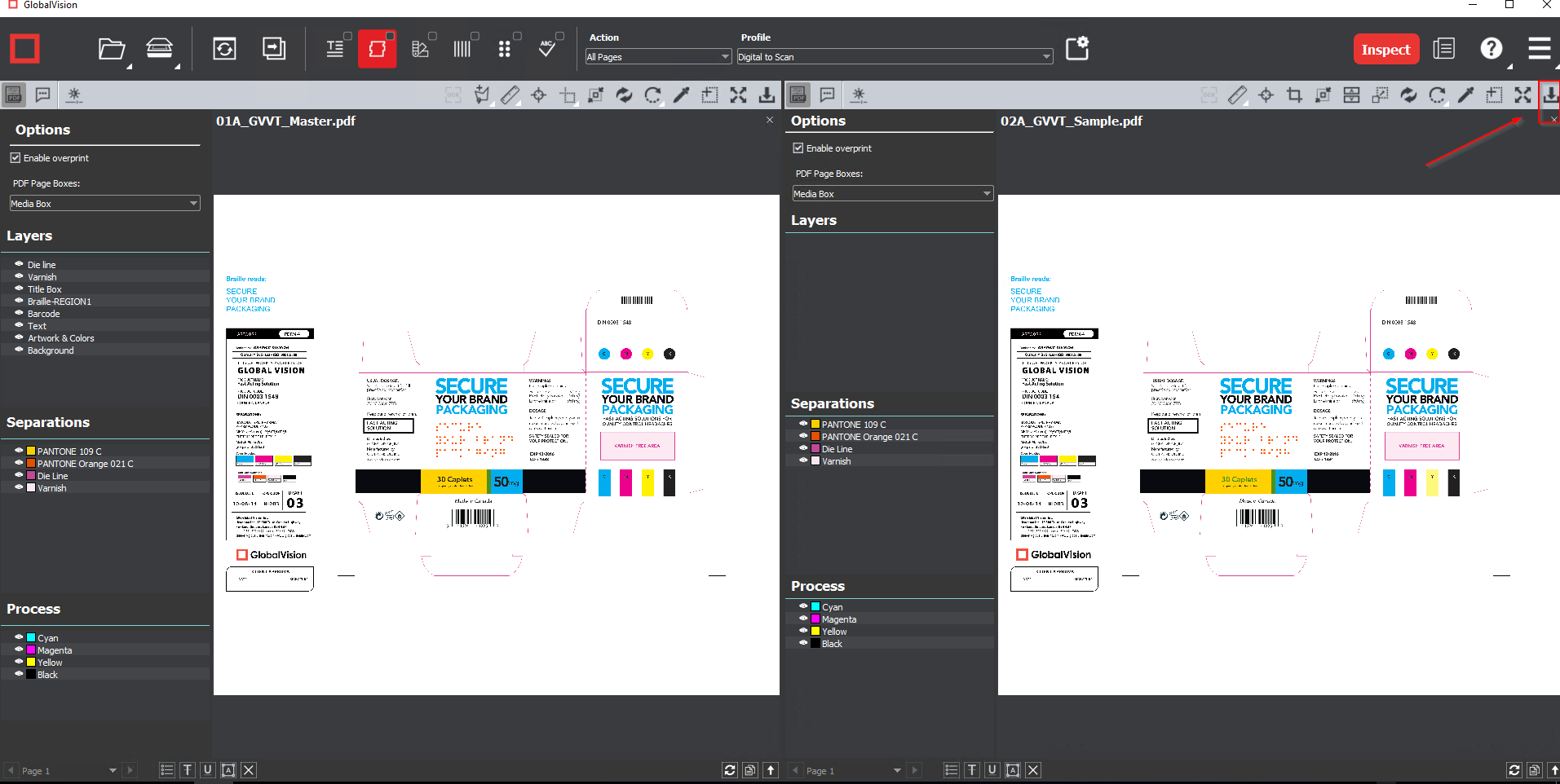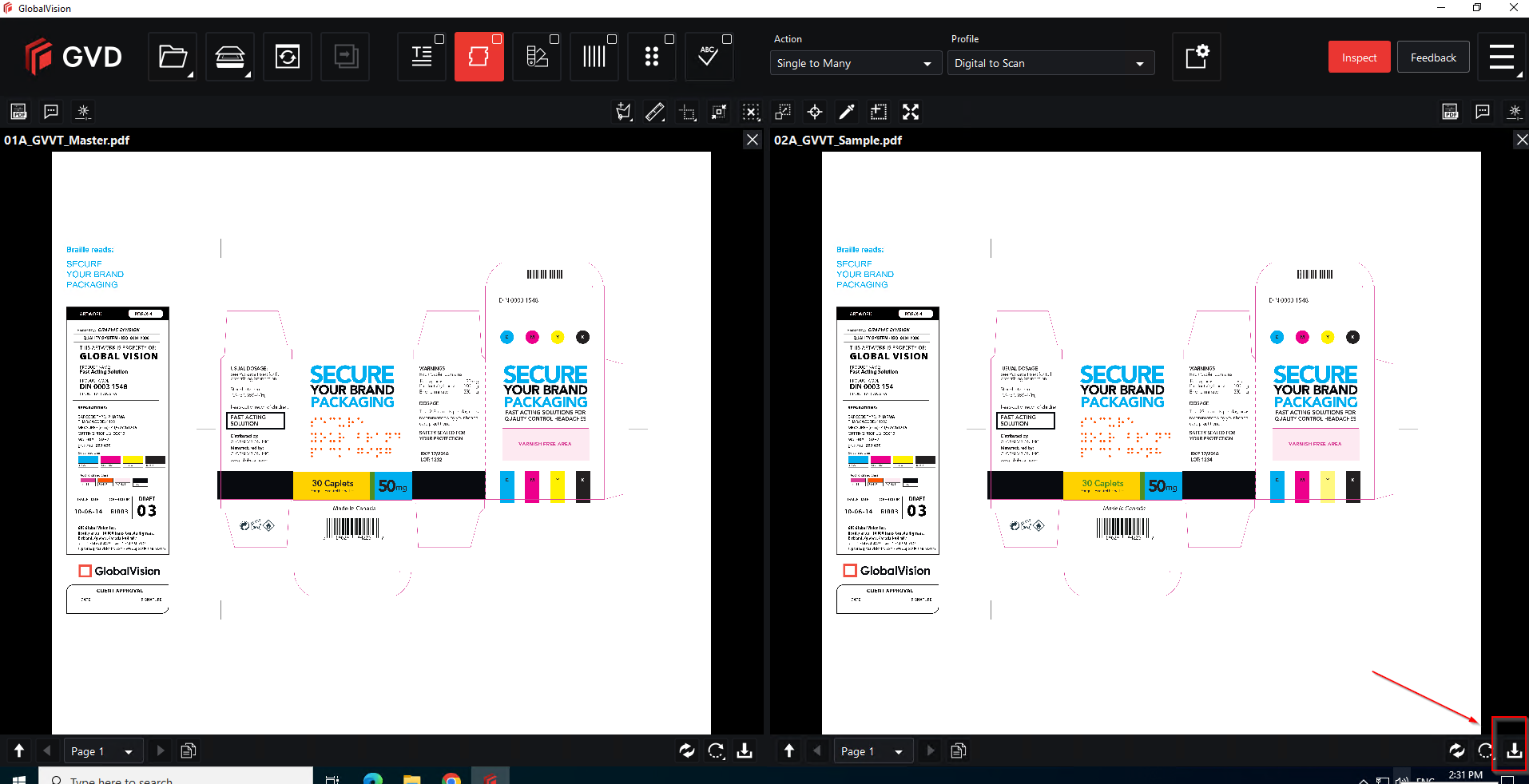 Please note that the down Arrow may appear on the top as seen below in the versions of GVD 5.9 and older.