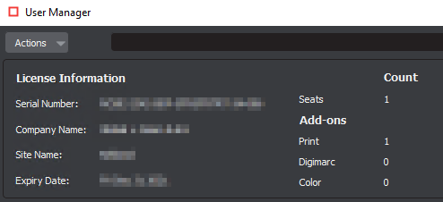 Note that if 1 item is missing on a bundle, the bundle will not appear in the “About” window. For example, if a license was provided with Graphics, Barcode, Text, and Spelling but no Barcode, “Digital” will not appear as a bundle: