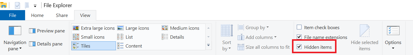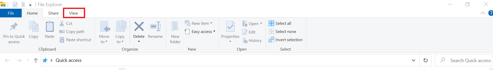 Open the File Explorer and select the “View” tab