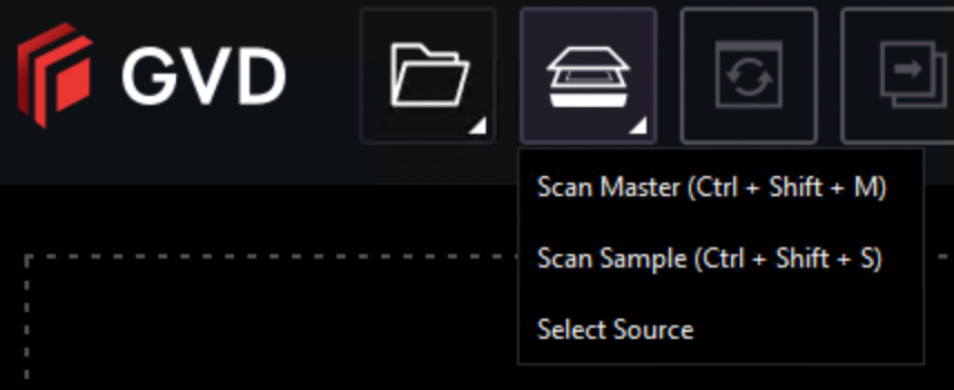 Click the scanner icon in the Master or Sample panel. Both options launch the scan.