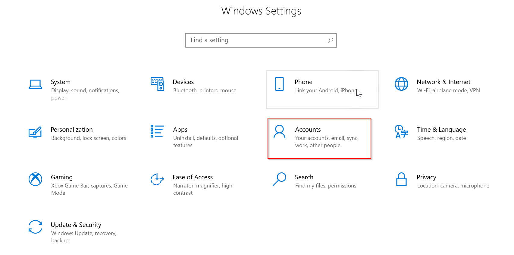 Click “Accounts” as seen below