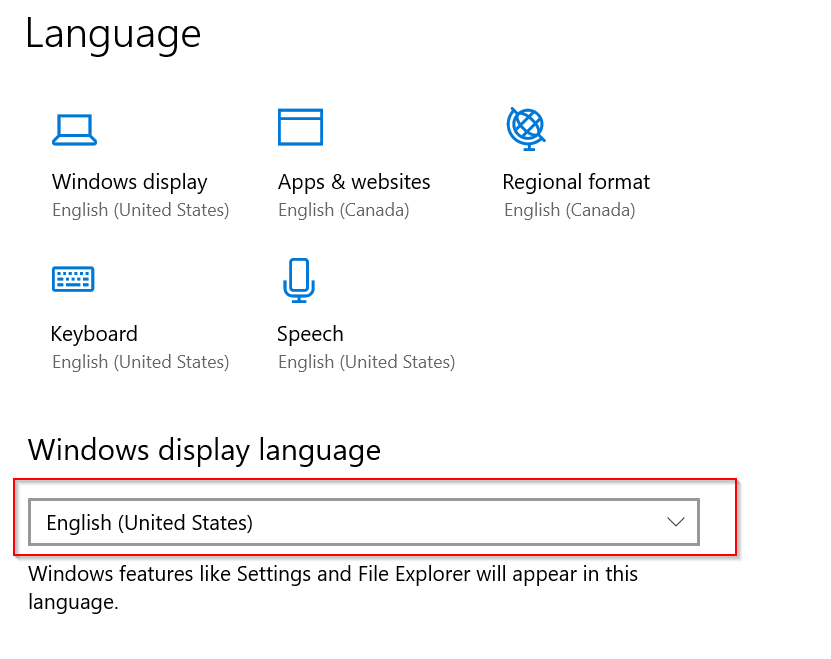 -Once the language settings are opened, ensure that “English (United States) is selected: