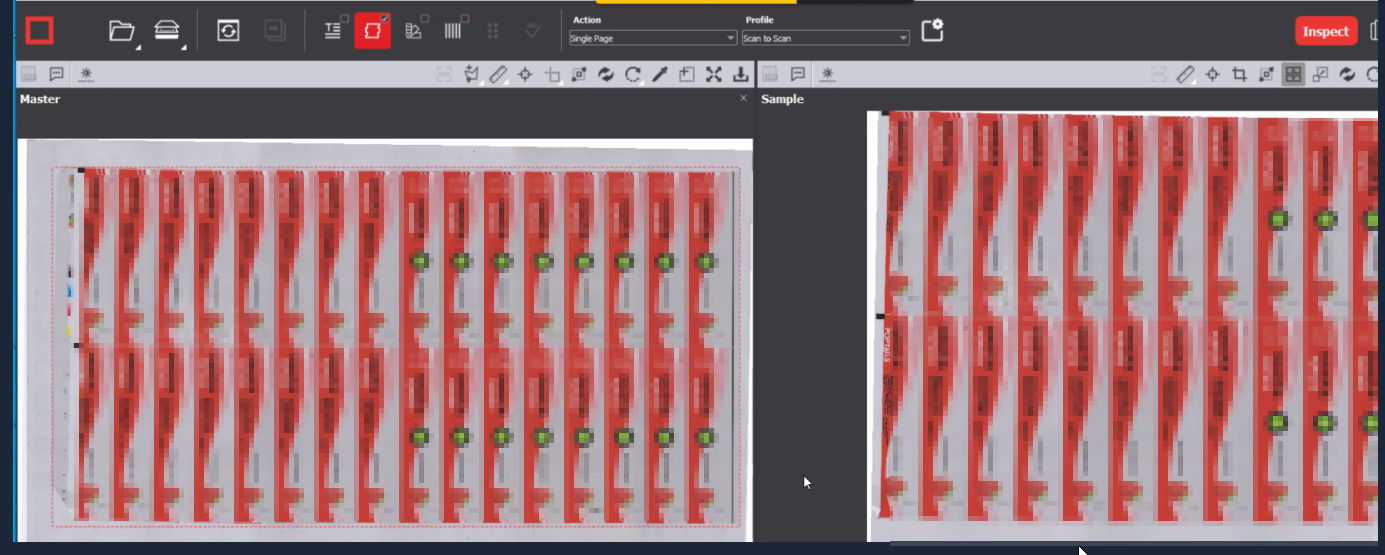 As seen in the screenshot below the scanned sample file shows half the image of the master.