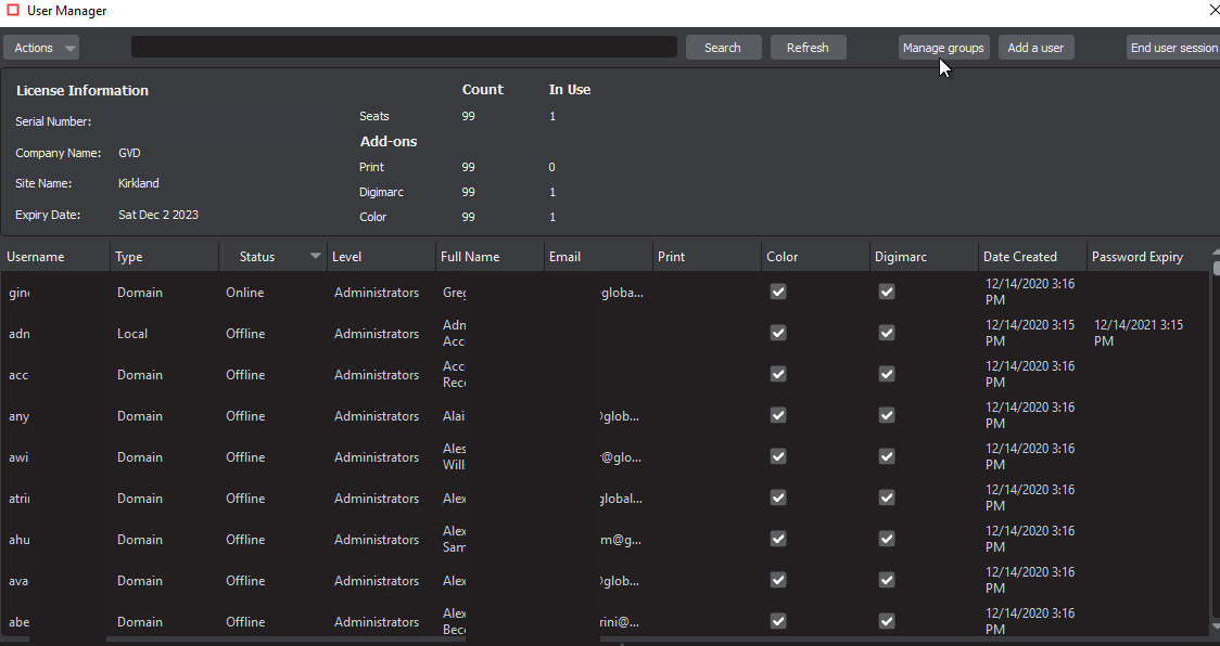 Remote Access GVD (using Admin account) and navigate to the “User Manager” window