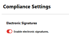 Compliance Settings - This function allows you to enable electronic signatures. From the