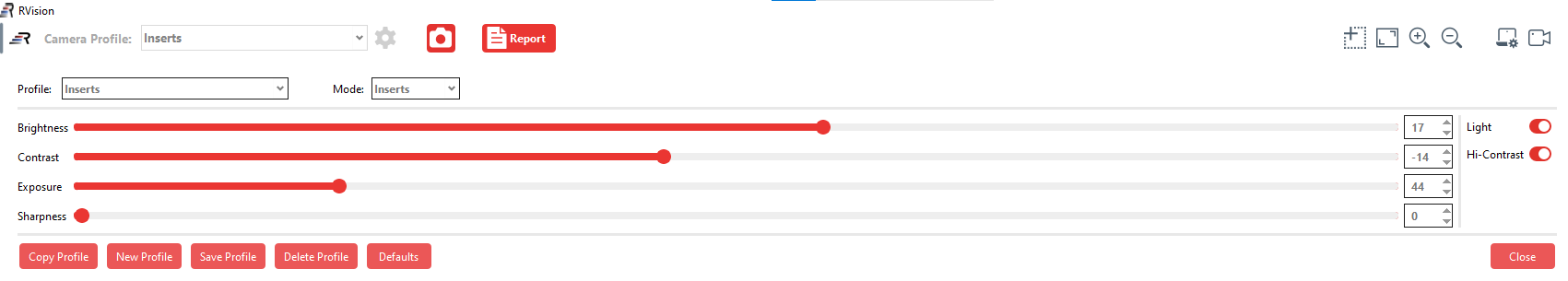 If you wish to manually adjust the Camera Brightness, Contrast, Gamma and Exposure, use the sliders or spin boxes.