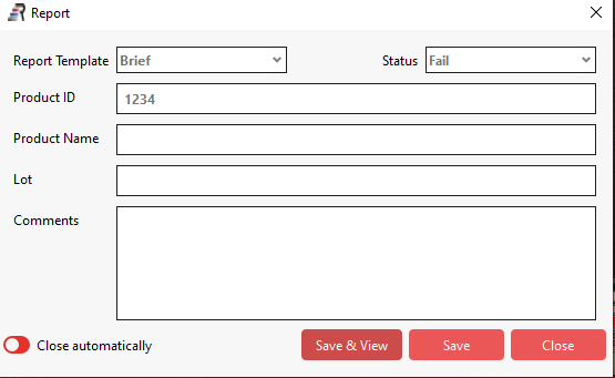 In order to generate a Counting report, select the Report icon from the main toolbar. Select the report template and complete the form. It is recommended to select “Save & View” to see the final report. It is also recommended to add your company logo to the report using this dialog box.