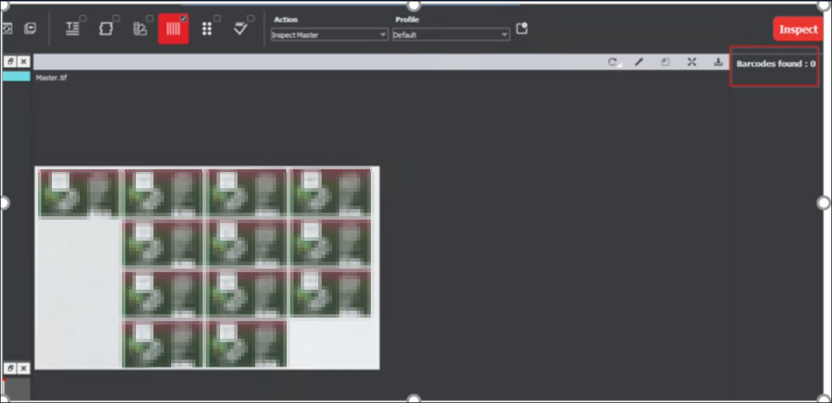 The user scanned two images containing barcodes and ran an inspection through GVD. It showed 0 barcodes found.