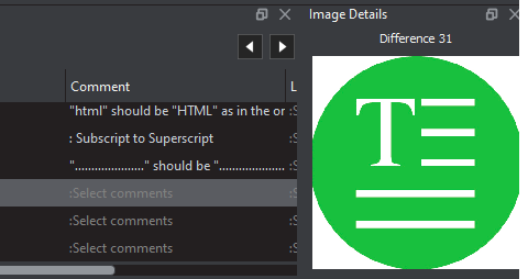 The Image Details panel displays image differences during text inspections. Switching between displayed differences is as simple as clicking on a new image difference in the Difference List.