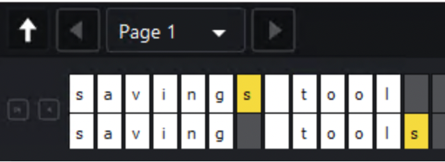Click on the difference in the Difference List. It gets highlighted in the Inspection View and displays in the Change Grid below the two panels. The characters in yellow in the Change Grid represent the differences between the Master and Sample panels.