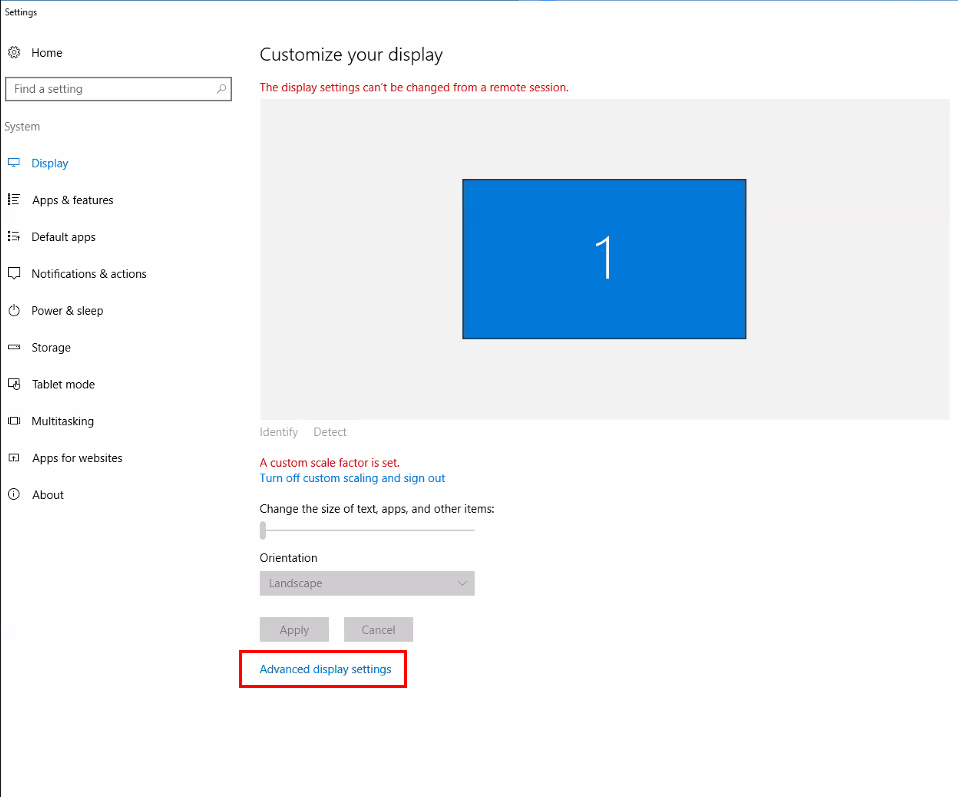 However, when using a remote desktop connection, the scaling option is well hidden as display settings are for the most part locked down when using a remote connection.