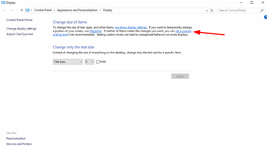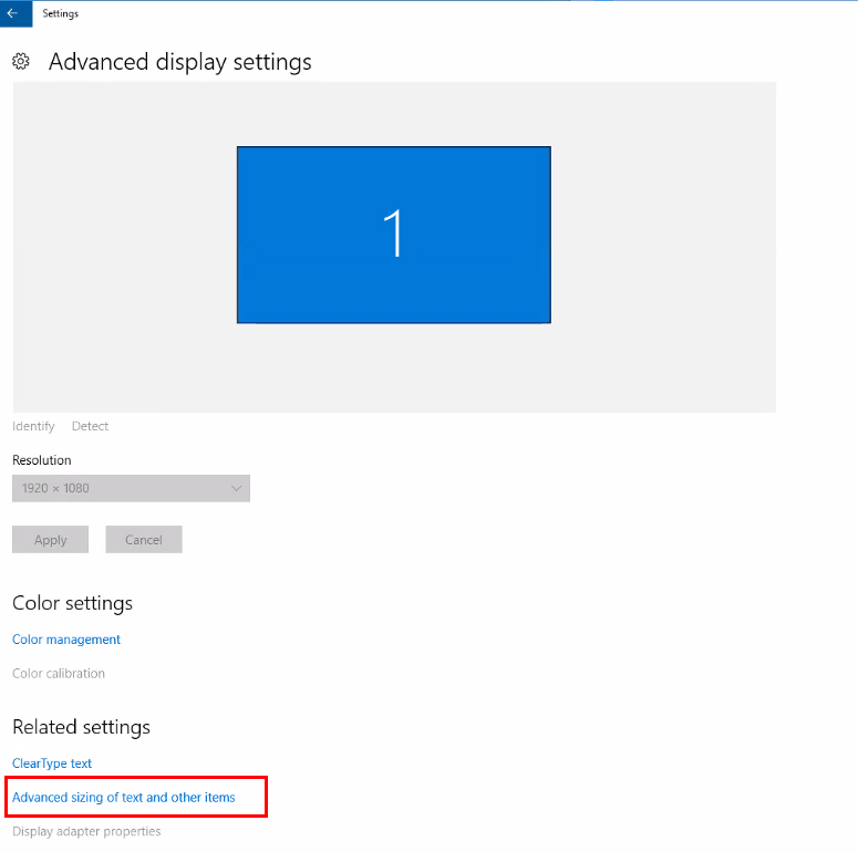 In this window, we will need to go another layer deeper, this time into the Advanced sizing of text and other items