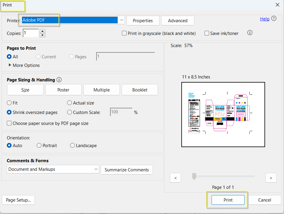 3. We can then open the sample file using Adobe and go to File, Print, Choose the option “Adobe PDF” and click on Print, you will have the option to name the file.