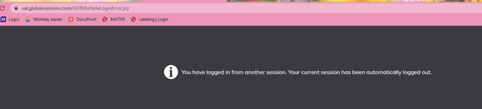 GVW - Error Message - Your current session has automatically logged out.