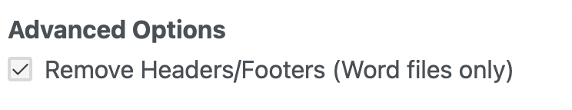 Choose the Remove Headers/Footers for files that are saved as Word option to automatically remove headers and footers in the documents if required, so as not to detect differences in page numbers, for example.