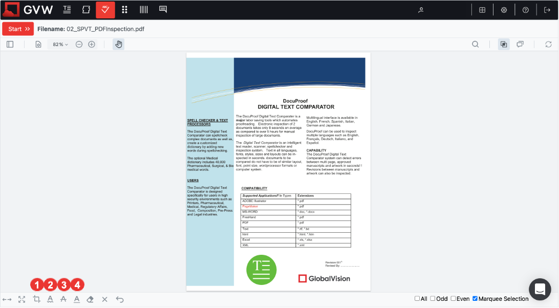 Using partial Inspection/Selection tools helps users define specific portions of a loaded file to be verified in Spelling Inspection.
