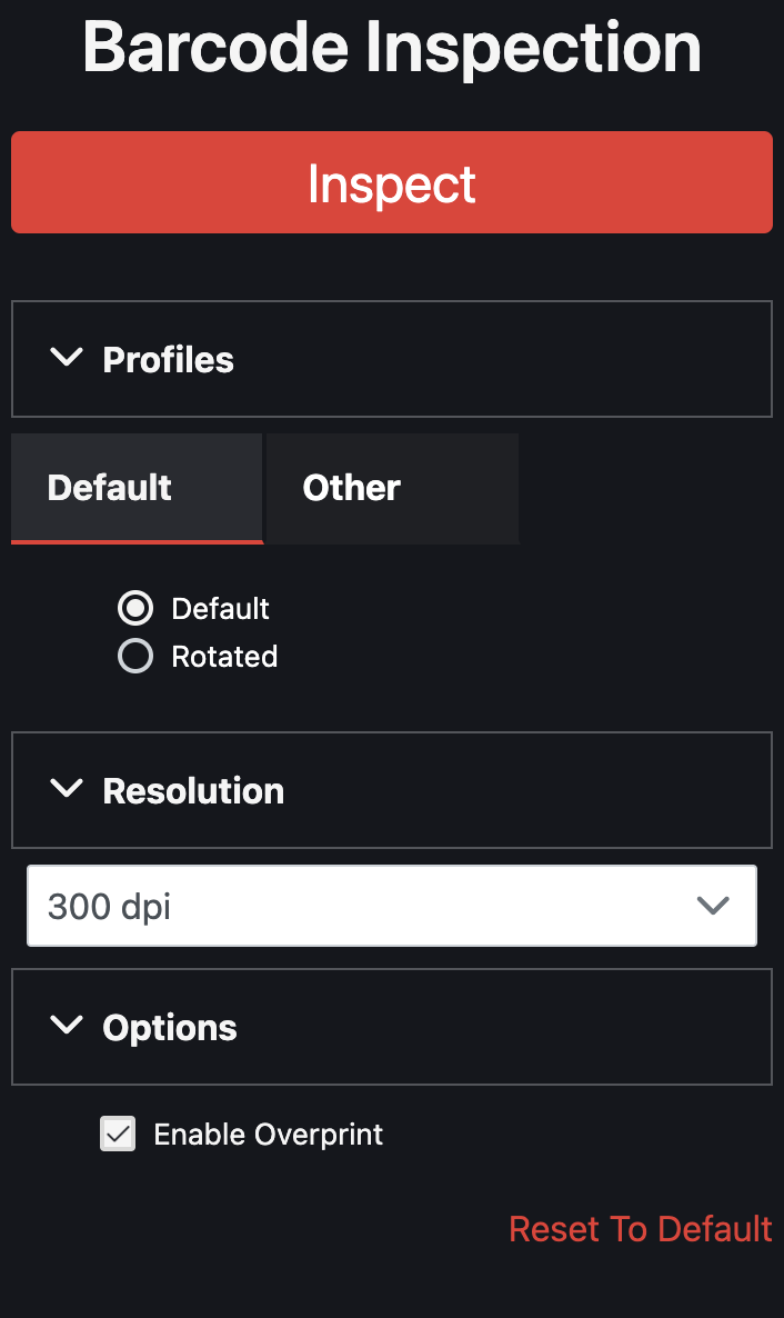 Click the Start button at the top-left of the page to expand the Barcode Inspection panel after the file has been prepped.