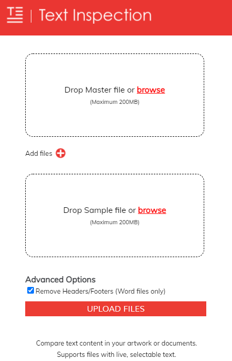 On the Text Inspection Page under Select Master File you have the option to Add files +