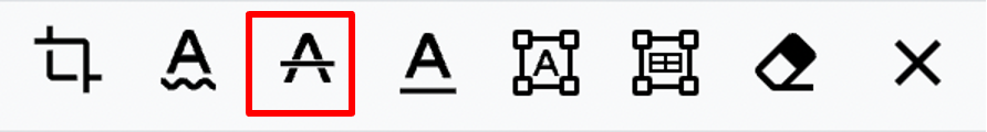 If you're having trouble selecting text to cross-out, try toggling Select By Area at the bottom right, clearing the selection, and trying again.