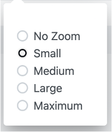 Note: Medium/Large are the recommended zoom levels for optimizing user experience - having an overview, as well as the relative position within the inspected page/area.
