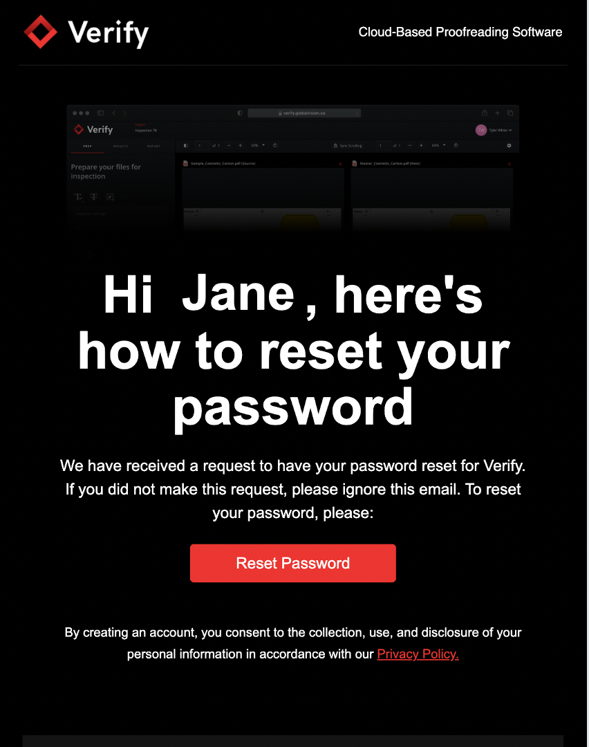 The Verify password reset window will launch
