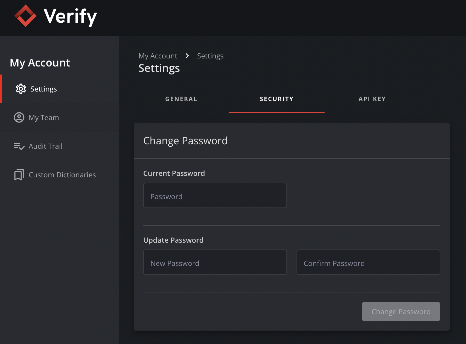 Once successfully logged in, you will be taken directly to the Verify main page.