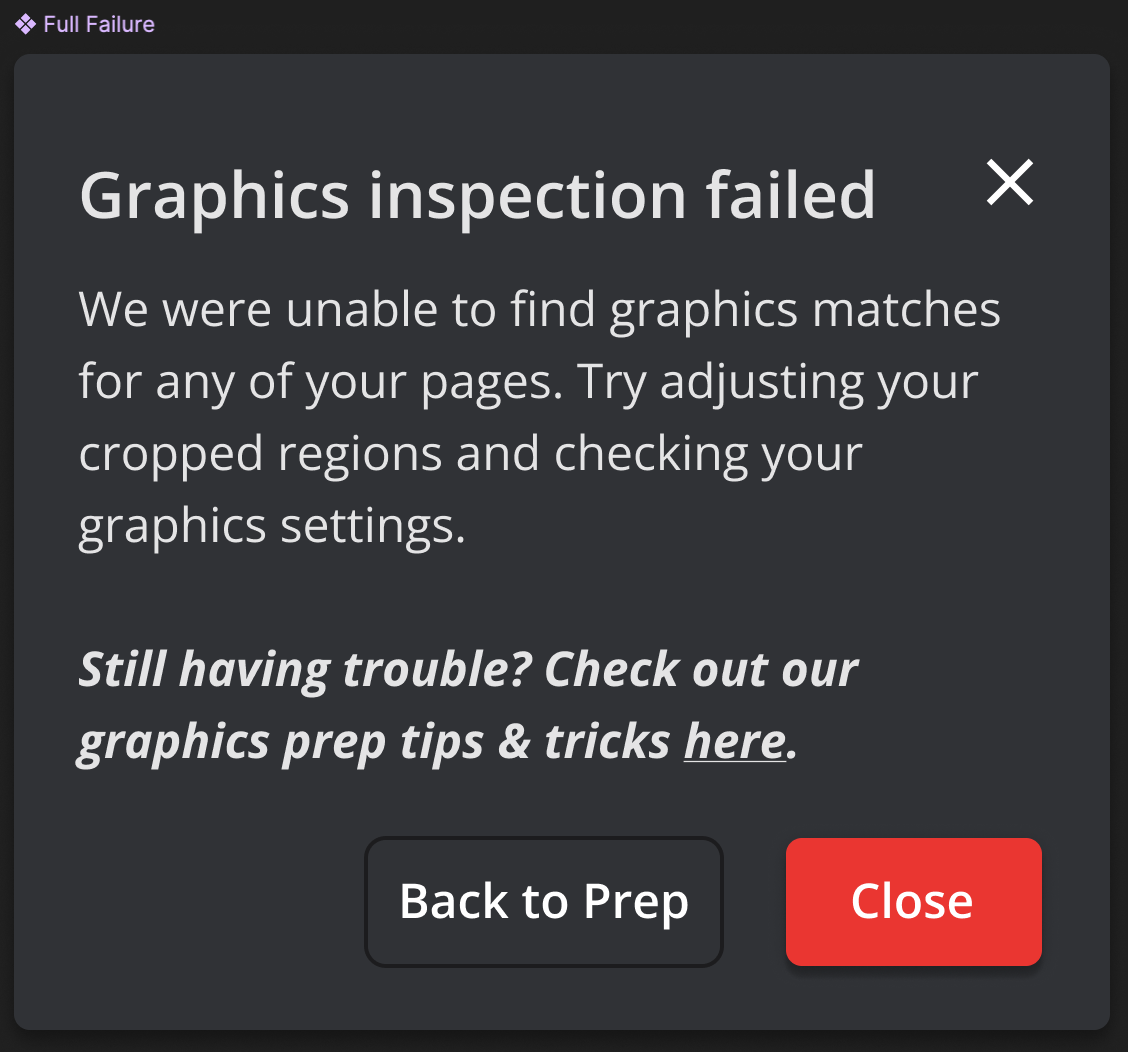 You tried to run a graphics comparison and, unfortunately, received one of the following error messages: