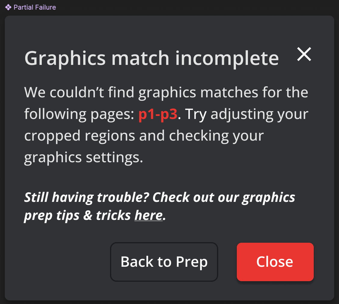 Your graphics comparison might fail because the elements you’re trying to compare on your Source and New file do not look enough alike. This often happens when users forget to hide layers and spot colors that might affect how one file looks compared to the other.