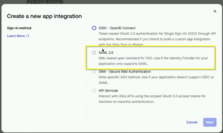 Select SAML 2.0.